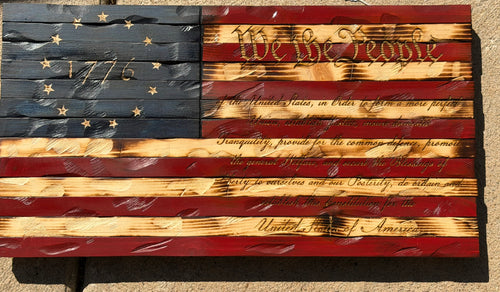 1776 “We The People” Rustic Wooden American Flag – 37x19 – Handcrafted